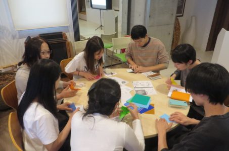 皆さんは、つる、花、ハート、虫、いろいろキレイに折っていました。