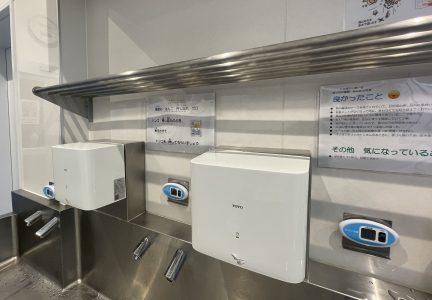 ↑手洗い場に今回のテーマを掲示して常に意識してもらうようにしています。↑