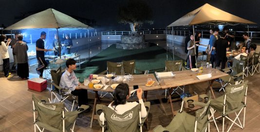 秋といえばそう10月の懇親会はB・B・Qです!(^o^) in屋上庭園!